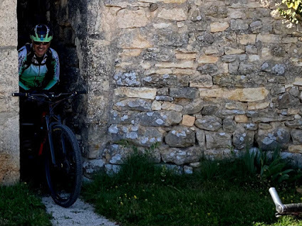 En effet Jean-Mi décide de faire concurrence à Lonjou, Alain Prieur et Rémy Julienne: vol plané en roulé latéral par-dessus le parapet d’un petit pont avec réception sur mes côtes et dans un petit ruisseau charmant aux odeurs printanières de lisier!! Après nettoyage des plaies (35 épines, 3 bleus, 8 griffures) et une très grosse blessure à son …amour propre (le plus dur!!!)