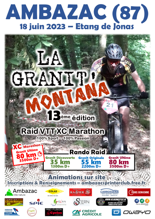 Plus grosse épreuve VTT de la Nouvelle-Aquitaine, la Granit Montana peut se vanter d'avoir eu des vainqueurs de renom : Thibaut VASSAL (Champion de France et vice-champion d'Europe), Jean-Paul STEPHAN (7 fois Champion du Monde et 14 fois Champion de France), Sébastien PELE (équipe de France), Julien DELAET (champion de Belgique), etc..