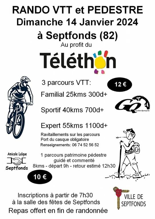 Nouvelle rando VTT co-organisée par les Guidons Quercynois et la mairie de Septfonds au profit du Téléthon.