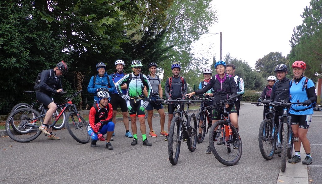 C’est un groupe de 14 vététistes qui s’élancent tranquillement permettant de s’échauffer, d’échanger et surtout de faire connaissance avec les nouveaux.