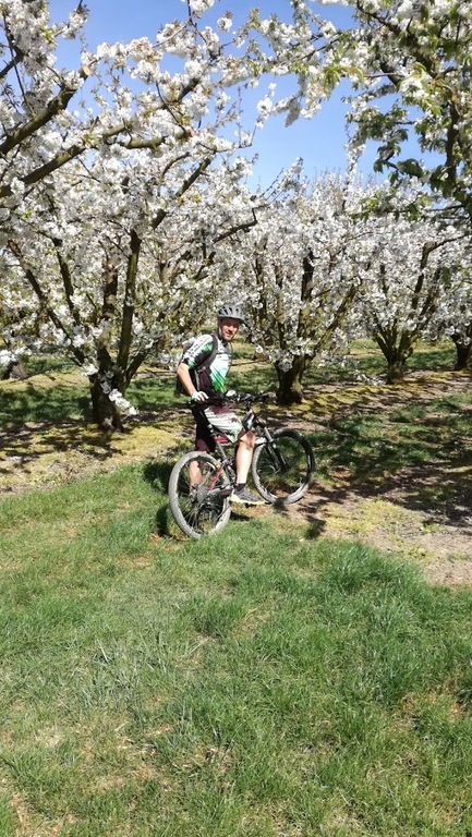 Pour bercer cette belle saison rien de mieux que de monter et descendre à travers les coteaux . Corbarieu aura la part belle avec son superbe point de vue , mais se balader aussi au cœur des vergers en fleurs reste un privilège . Laurent qui était de retour parmi nous n’a pas perdu de son punch . C’est également le cas pour Michel qui lui a été inspiré par le soleil .