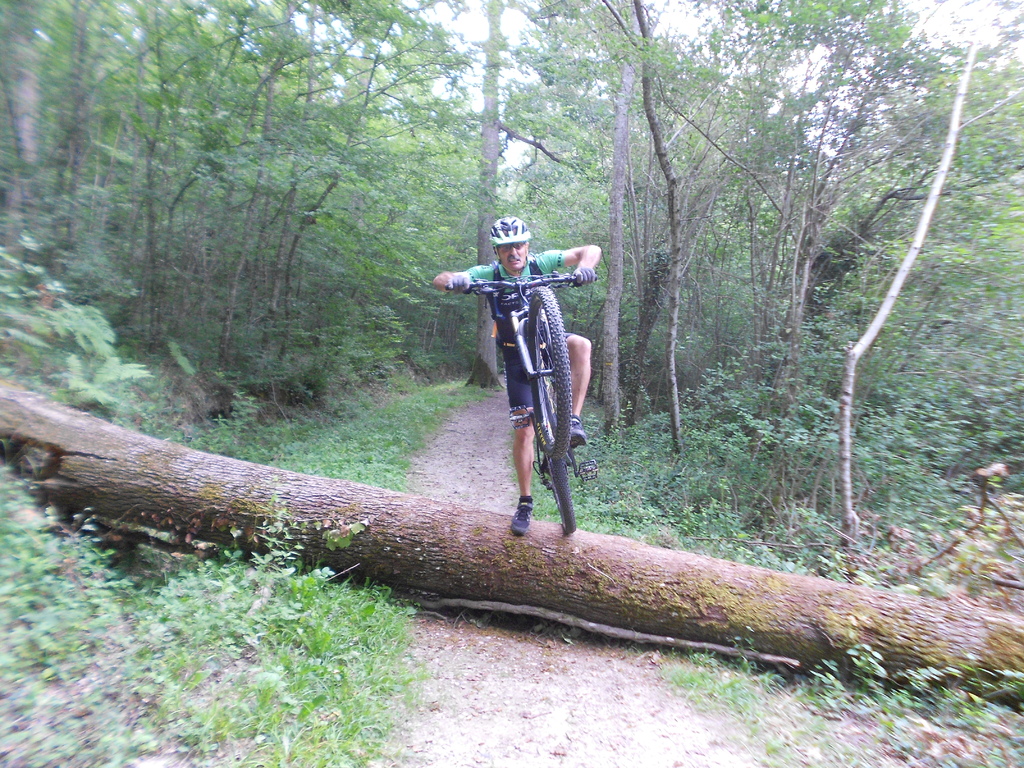 Jean Marc est chez lui , mais je lui fais découvrir un sentier qui avait échappé à son vtt durant ses longues années de pratique comme quoi ! Alain et son sac plein de bananes est là , j’ai beaucoup de plaisir à bavarder avec lui . Stéphanie courageuse et volontaire , elle progresse en mettant en œuvre mes conseils lorsque pointe la difficulté .