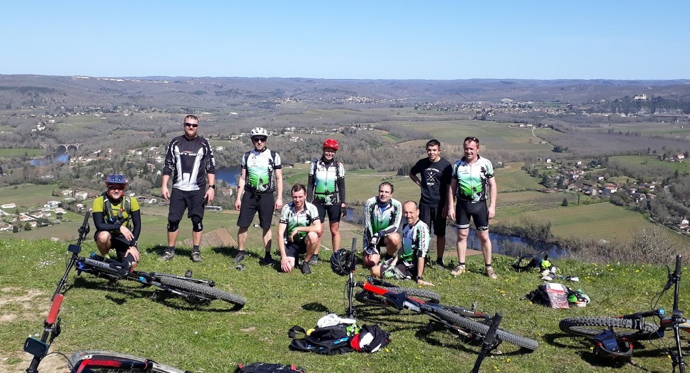 Et ce n'est que le début, toute la matinée se passera comme ceci. Des pauses fréquentes sont nécessaires pour ne pas trop entamer les organismes, car pas de répit sur ces pistes. On aperçoit Cahors, puis Pradines et les derniers km nous emmènent sur le point de vue au-dessus de Douelles, piste de départ des parapentistes en surplomb de cette belle boucle du Lot. On ne pouvait pas trouver mieux pour un bon pique nique.